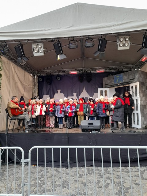 A városi adventi programsorozat keretében 2. osztályos kisdiákjaink adtak karácsonyi műsort a Városház téren felállított színpadon.